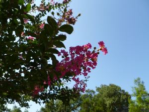 On a recent trip to South Mississippi, I enjoyed a profusion of crepe myrtles along the highway medians, in people’s yards, beside office buildings. Oddly, the farther south we went, the fewer the explosion of flowers (probably something to do with the coastal region’s wetter weather conditions).