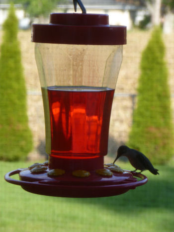 So the next time I was in WalMart, I browsed through the garden and outdoors section, finally deciding on a hummingbird feeder.