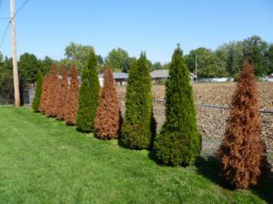 Just a few of the arborvitae shrubs we lost this summer — maybe because of drought, maybe because of pests or disease