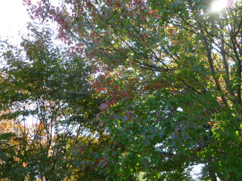 But on my Saturday afternoon walk — minus the Sheltie, who doesn’t cotton to my carrying a camera and posing shots! — I found a few tiny glimmers that Mother Nature is preparing for Fall regardless.