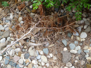 My heart was pounding as I reached up with the club, pushed the nest off the downspout, and, finding it empty, chipped it into some tall grasses.