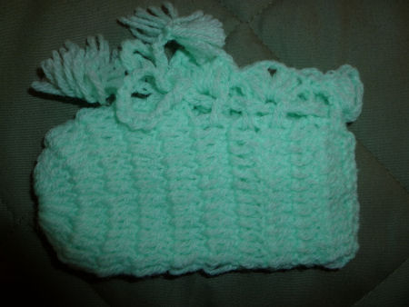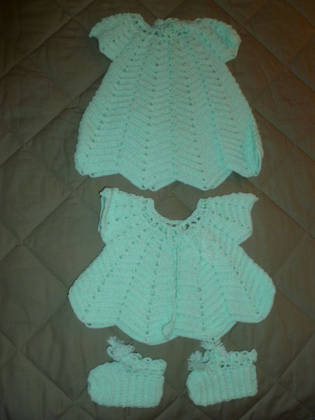 A tiny dress, a diaper shirt, and matching booties — all lovingly crocheted for a great-grandchild she would only meet a few times!