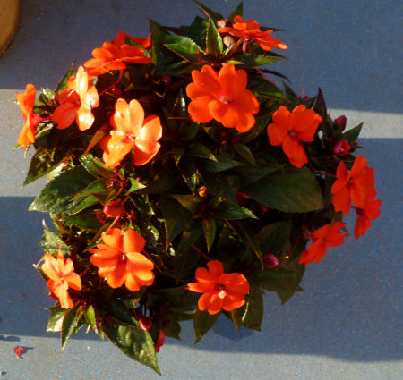 These Sun Patiens remind me of salsa dancers, Kim! They look so saucy against the blue color in mom’s patio — almost like they’re trying to say, ‘Hey, look us over!’