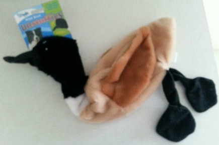 So shortly thereafter, I gnawed a hole in its neck — right where the “honker” is! — and this time, Mama took Goose away until she can perform a stitching operation on him (which she has yet to do — what’s the hold up, Mama??)