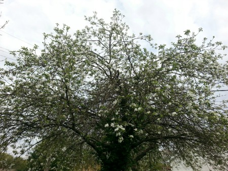 My mother had some of those peace roses. They were among my favorites, for sure. I think the shrub right above it is white lilac. One thing that always balanced the sadness of seeing the blossoms fall from the trees was the experience of seeing them fall all at once, sometimes. It would be like a petal blizzard — just wonderful.