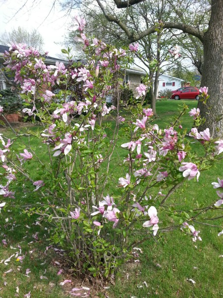 A “petal blizzard” is a great way of expressing it! I’ve got a photo of Dallas lying in a carpet of pink magnolia petals from one of our walks, and I just love it.