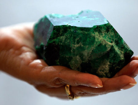 Today, most Emeralds are found in Colombia, Brazil, Zambia, and Zimbabwe. Just look at this 11,000-carat raw emerald found in Colombia: