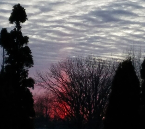 What a beautiful sky. Red sky in morning is a clue, for sure. I hope you don’t get any of the bad storms that are marching across the country.