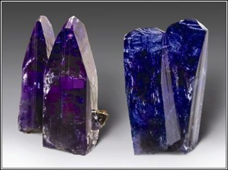 Natural blue Tanzanite, thanks to Geology. These pieces are actually the same. Viewed from different directions, Tanzanite can display as different colors.