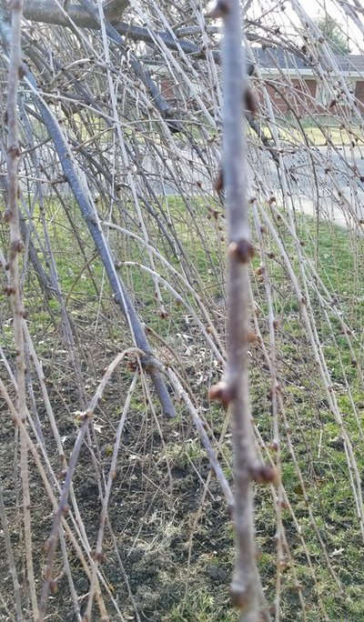 This is the Redbud tree I had planted just last year. Those tiny buds will become lavender-shaded flowers, which will give way to heart-shaped green leaves.