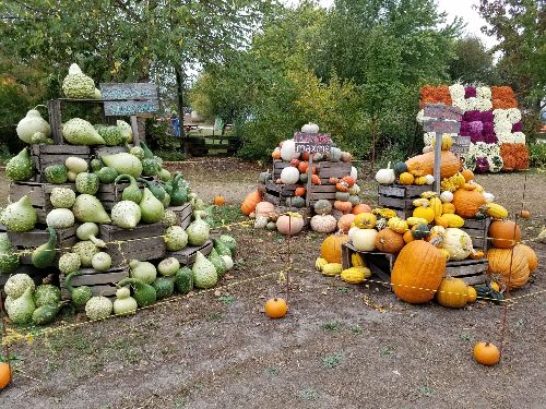 The Patch sells lots of pumpkins as well as mums. They also sell seeds so you can grow your own, outdoor decorations, and that sort of thing. It fascinated me to see how many varieties there are … and from so many countries. As you said, they really took it up a notch!