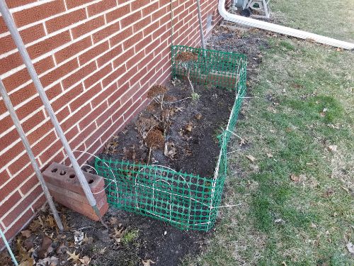 After transferring it in three batches from a big pot to a sunny spot in the backyard, I put two fences around the area to protect it from pests and weather: