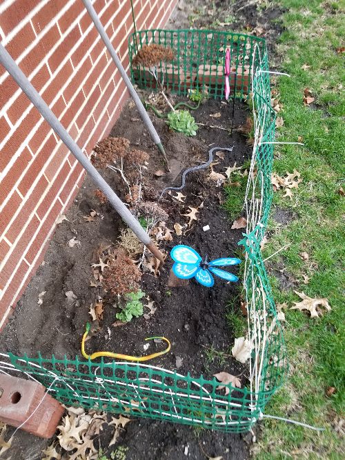 Lo and behold, Bunny was inside the fence with my Sedum. And when it saw me, it leaped over both fences and sprinted off to safety.