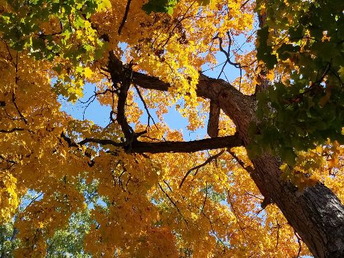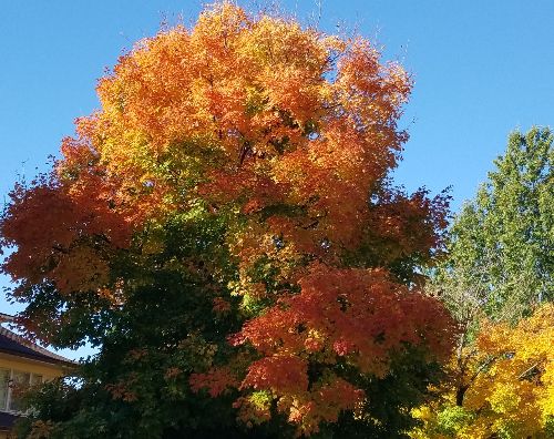 The trees really are beautiful this year, but I wish it would rain. We had plenty of rain in the Spring and early Summer, but as of August, it’s been rather dry. Still, I guess we should just enjoy colorful trees, since there’s not much we can do about the drought!