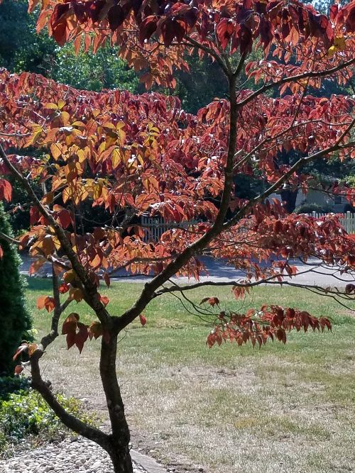 Here’s another dogwood, this one turning shades of maroon and purple: