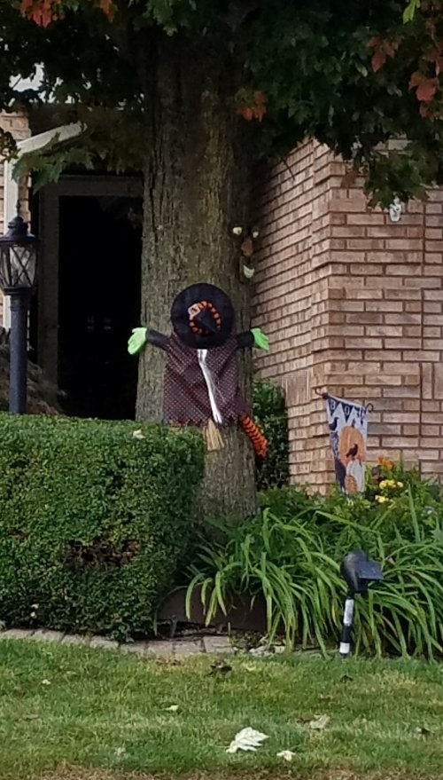 Wow, homeowners really do like to decorate in your neighborhood! What a great Walktober! 🍁 Most of our trees are still green, too, although Oct. 24 – Nov. 6 is supposed to be our peak. I love the witch plastered to the tree. And all the mums. One can never have too many mums. 🍂
