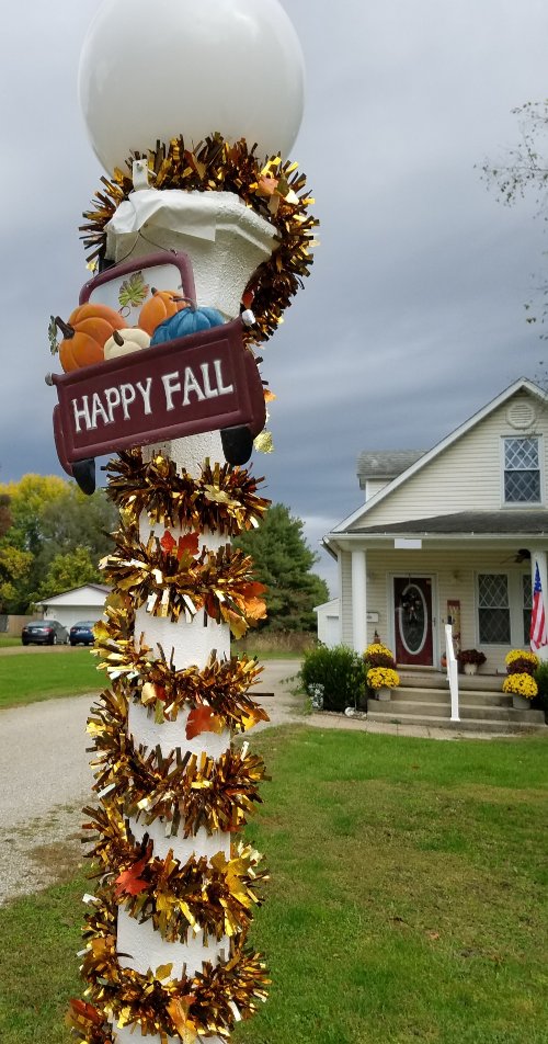 So lace up your sneakers and join me as we travel around Central Illinois, marveling at the Fall and Halloween decorations … and the lack of drop-dead gorgeous color.