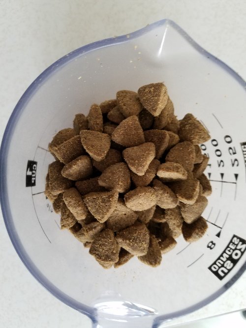 Good. For those who can’t tell (and for those who wonder if their guess was right), it’s the kibble.