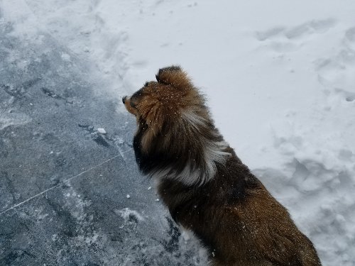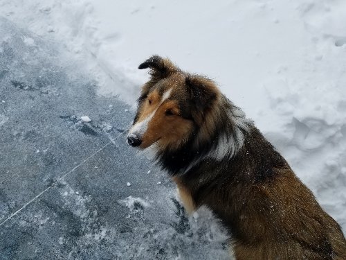 Monkey, too, has been licking at it and trying to chomp on the icicles after they drop. Maybe a storm of this magnitude is just too overwhelming for a little Sheltie, but I’d think knowledge of winter would run in his DNA.