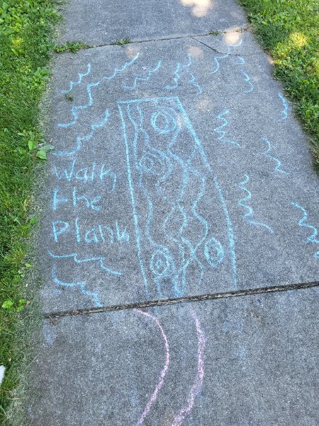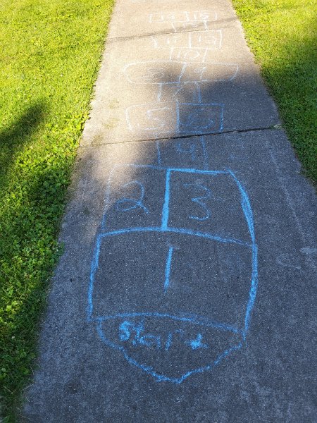 It’s great to see the tradition of sidewalk art continuing — especially that hopscotch, but also the creative additions. Of course, when we were making hopscotch outlines on the sidewalk, we were using limestone rocks from the roads or driveways. Sidewalk chalk hadn’t been invented yet!