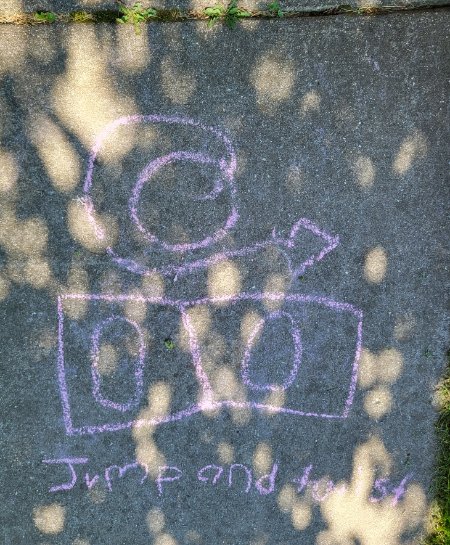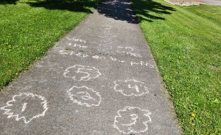 It’s great to see the tradition of sidewalk art continuing — especially that hopscotch, but also the creative additions. Of course, when we were making hopscotch outlines on the sidewalk, we were using limestone rocks from the roads or driveways. Sidewalk chalk hadn’t been invented yet!