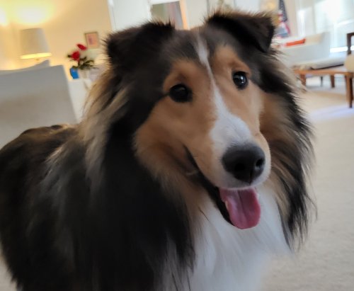 You can’t run after a Sheltie — they’ll just panic and run away. Still, I jumped out of the car, gasped when I noticed an older-model van approaching on our side, and yelled for Monkey to stop and come back.