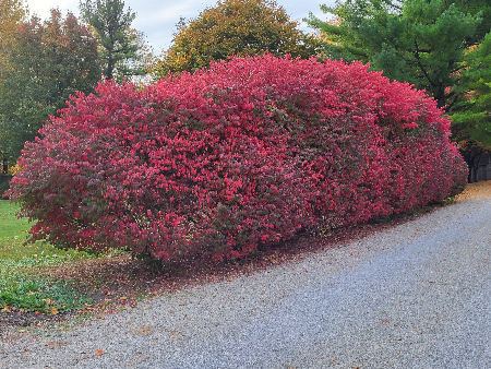 And let’s not forget the reds! This hedgerow of Burning Bush offers a striking spot of color when Fall arrives. Doesn’t it look like a cartoon critter: