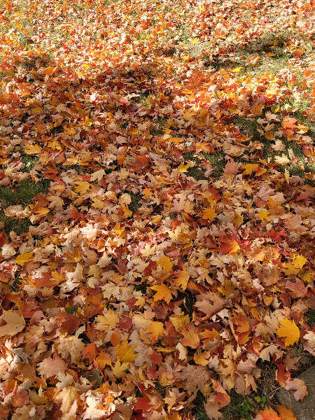 The Fall leaves, when they’re still on their trees, are glorious, but remember, it’s not called “Fall” for nothing. Somebody might want to rake or mulch these: