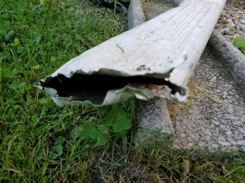 Note: This is my interpretation of Twisted, the WordPress Photo Challenge for the week. The exact opposite of a straight line, I suppose. Anyway, I took this one this morning, after the lawn guys ran over the gutter downspout yet again. Sign.