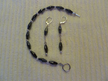 5) A bracelet/earring set in Hematite. This stone is incredibly slick to the touch and is the gem form of iron. When cut or ground, Hematite gives off red dust that runs like blood when mixed with water. People have used this “red ochre” for thousands of years to paint caves and tombs. Here, I separated the Hematite stones with 4mm silver beads on the bracelet and used a toggle clasp. Trust me, it’s heavier than it looks — that’s why the earrings are shorter than I’d usually make!