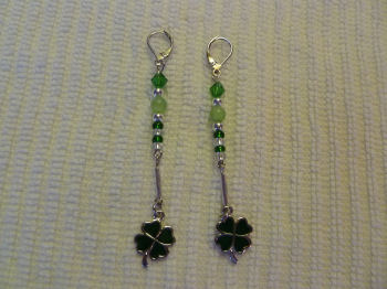 6) Can you tell the Fighting Irish have been on my mind this weekend?? This pair mixes several different shades and sizes of green beads, silver spacers, and of course, a lucky four-leaf clover dangle. They must have worked because the Irish beat the Navy in Dublin on Saturday, 50-10!