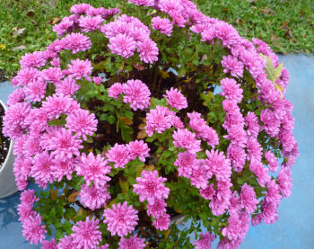 In a sea of reds and yellows, this purple mum truly stands out — I like to think it knows how special it is!