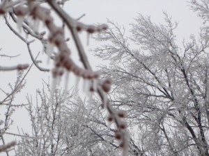 We’re in line for more ice today, as if we haven’t had enough. Then, we’re supposed to get six inches of snow. Then, the snow is supposed to get blown around in gusty winds.
